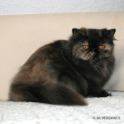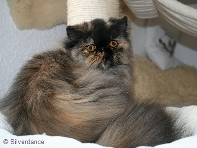Yellicle's Medley of Silverdance, is a tortoiseshell (black-tortie) Persian