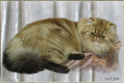 Persian, golden-chinchilla (golden-shell): This color corresponds with golden shaded only is here the Tipping to 1/8. Also this cat should have green eyes those black bordered, likewise the nose mirror.