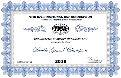 Scarlett was nominated for the BEST LONGHAIR CATEGORY (Persian, Exotic Shorthair and German Longhair)